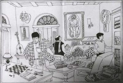 6. Na druhom konci miestnosti je na stole gitara, ale jej vrchná časť vyzerá skôr ako na sitári.